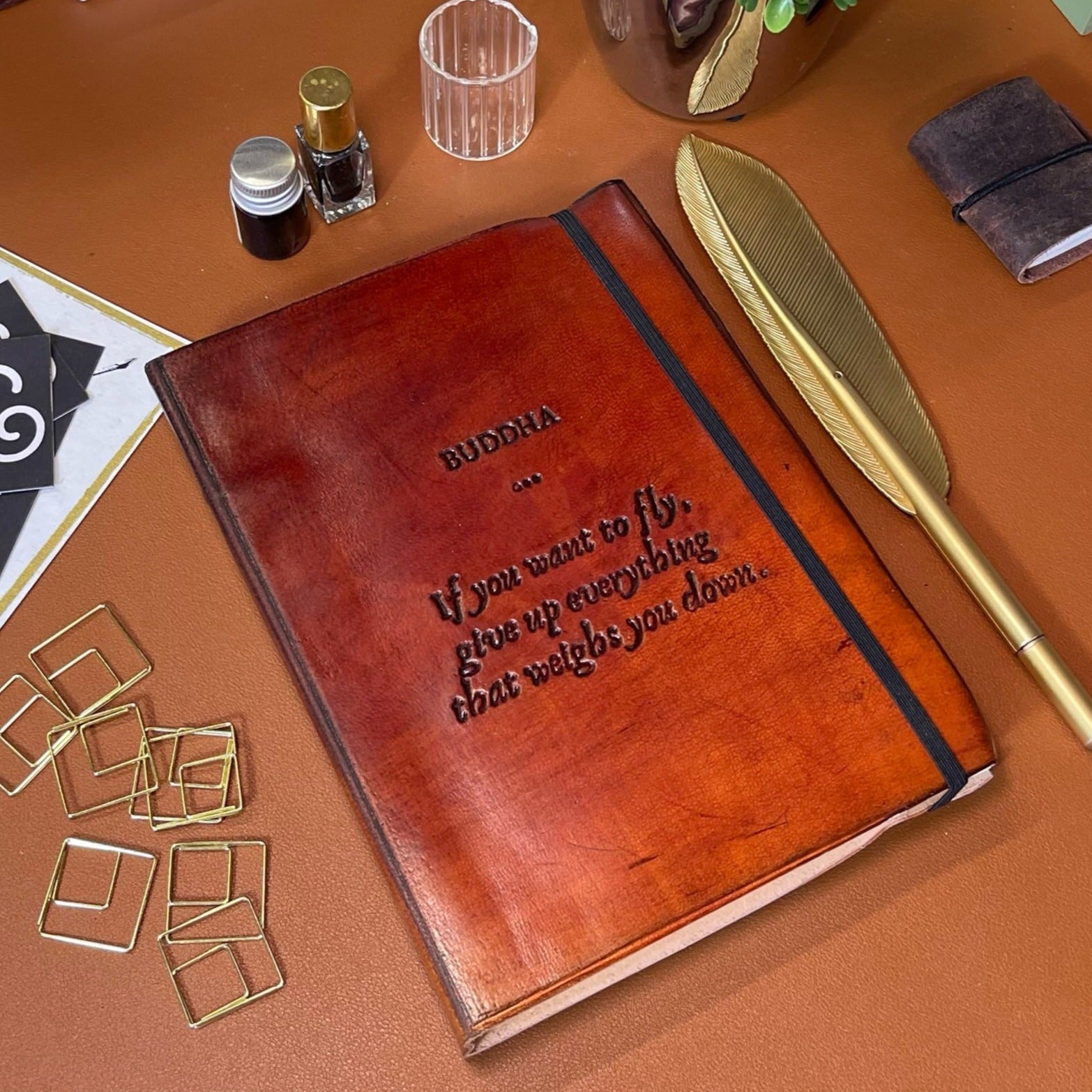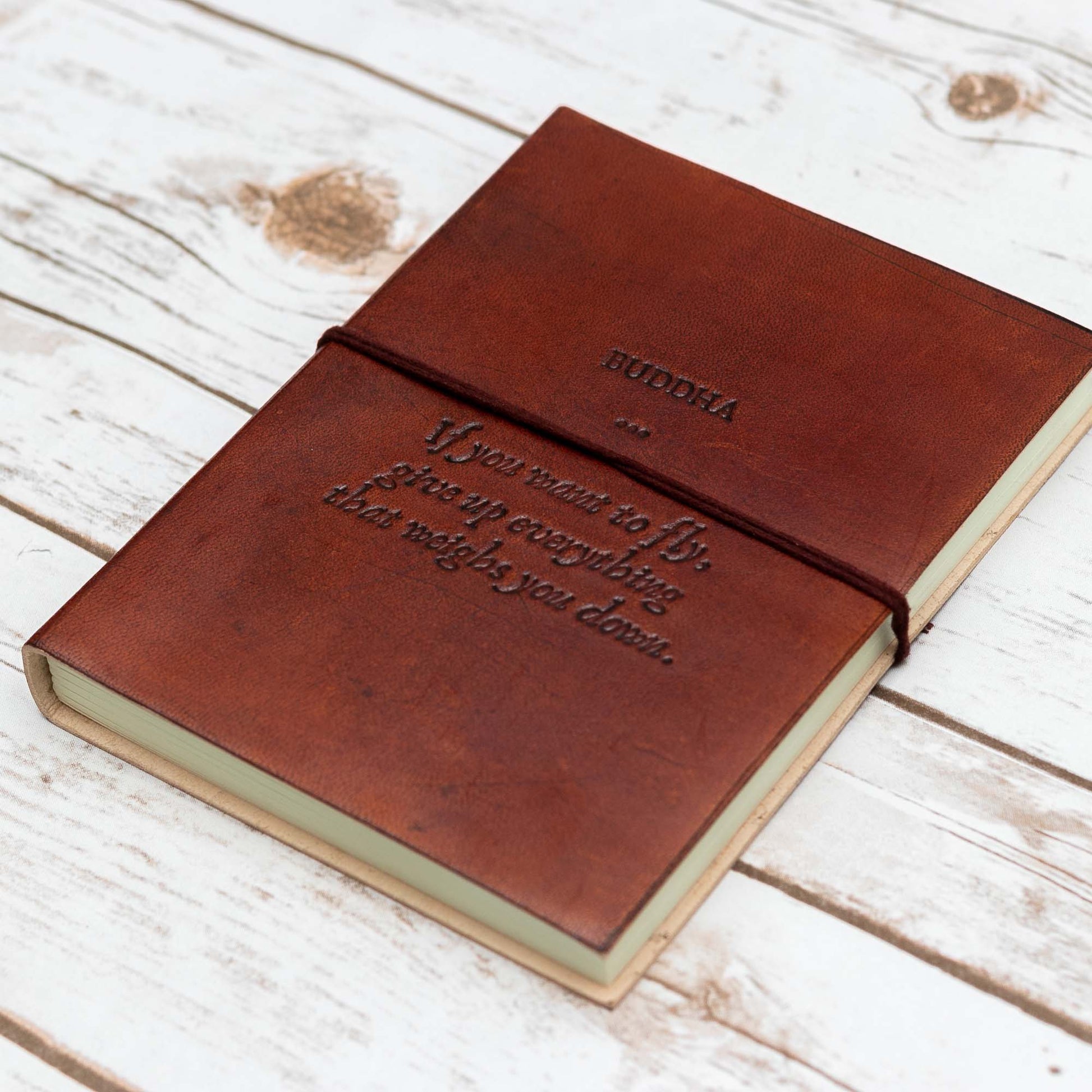 This handcrafted leather quote journal embossed with the quote by Buddha: “If you want to fly, give up everything that weighs you down” will help you free yourself from unnecessary worry.