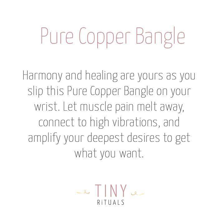 As a conductor of energy and positive vibration, copper can instantly connect to all the good vibes out there and use that connection to dispel negative energy and keep you shining like the brilliant sunbeam you are. For those who are wanting a spiritual tool to manifest their deepest desires, the Copper Healing Bangle can also act as an amplifier of these thoughts and send those wishes out into the universe. Finally, Copper is also intrinsically linked to abundance and is ever ready to send prosperity in your direction.