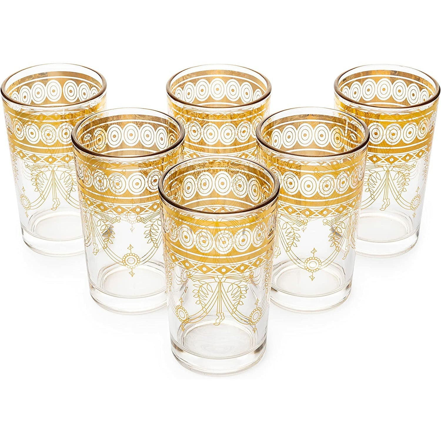 Gold Moroccan Glasses Artisan Hand-Made 7.5 oz Set of 6