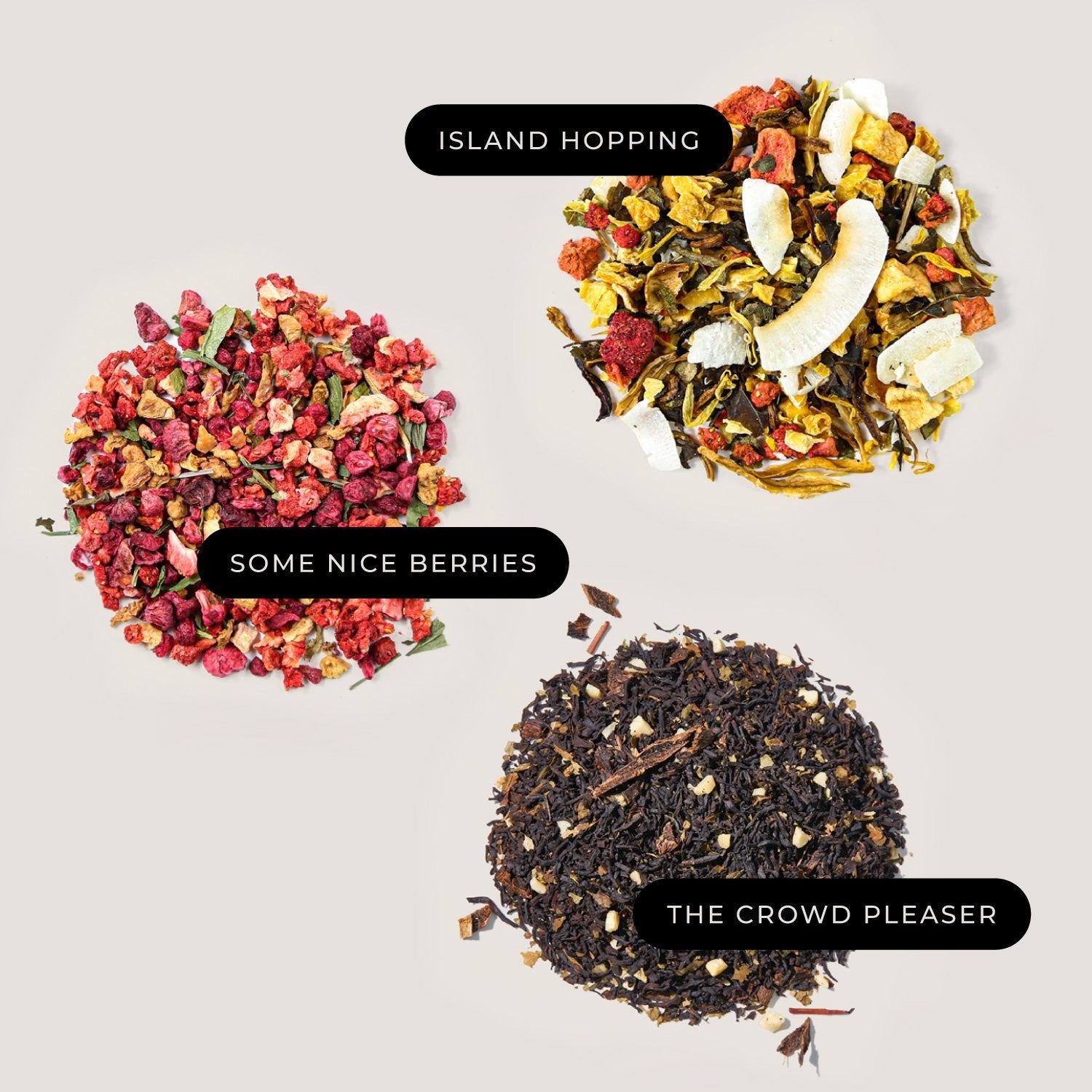 - The Crowd Pleaser: Black Tea, Vanilla, Almond, Sweet Blackberry Leaves. CONTAINS: Nuts.