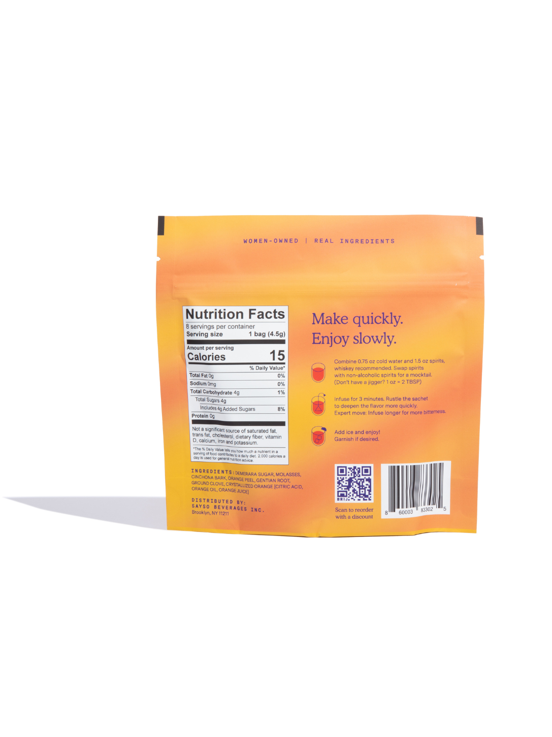 Each sachet has an expertly portioned blend of all-natural gentian root, cinchona bark, and orange. For a rich, jazz club-like flavor that’s perfect every time, steep in whiskey and cold water for 3 minutes.