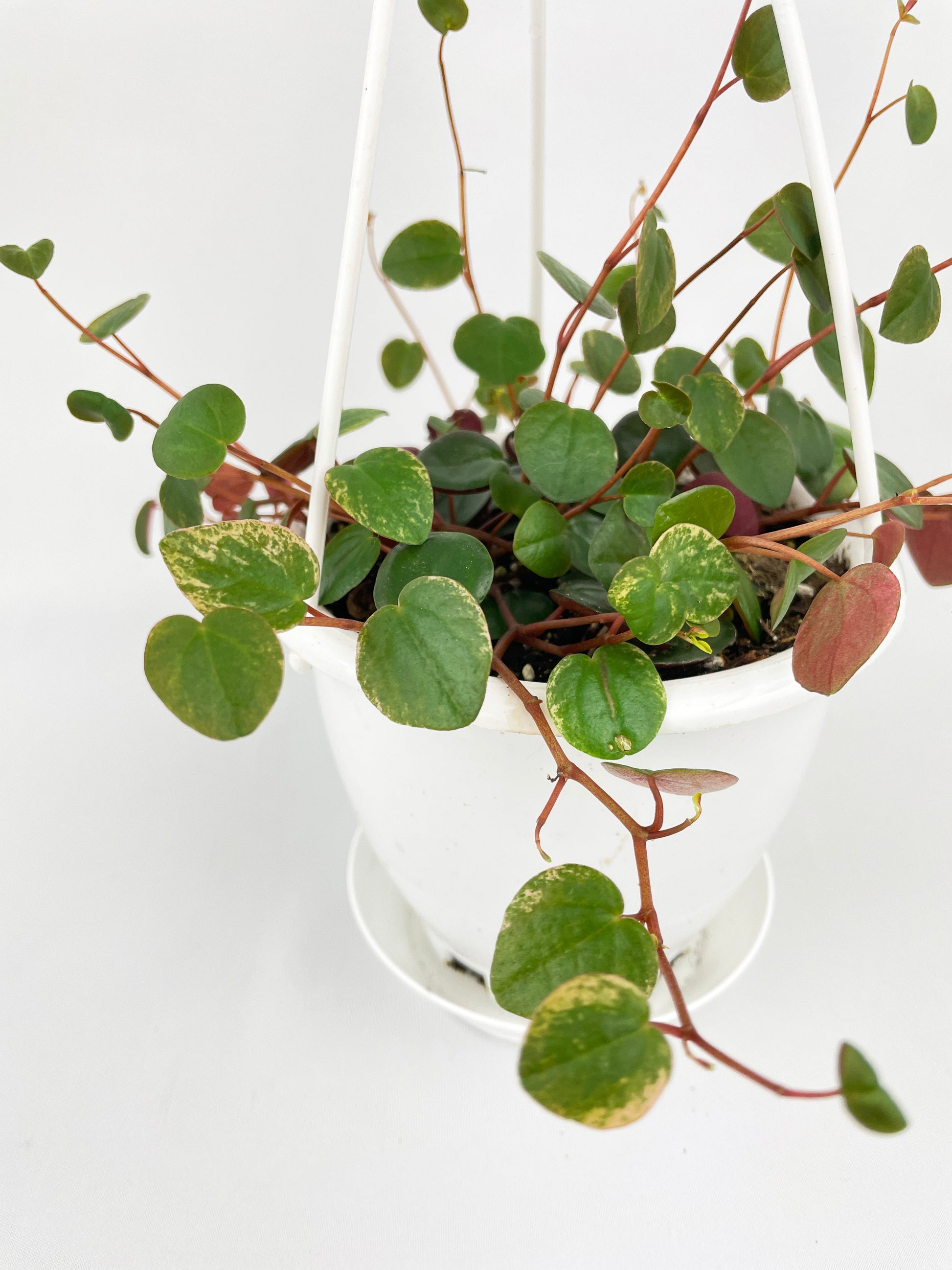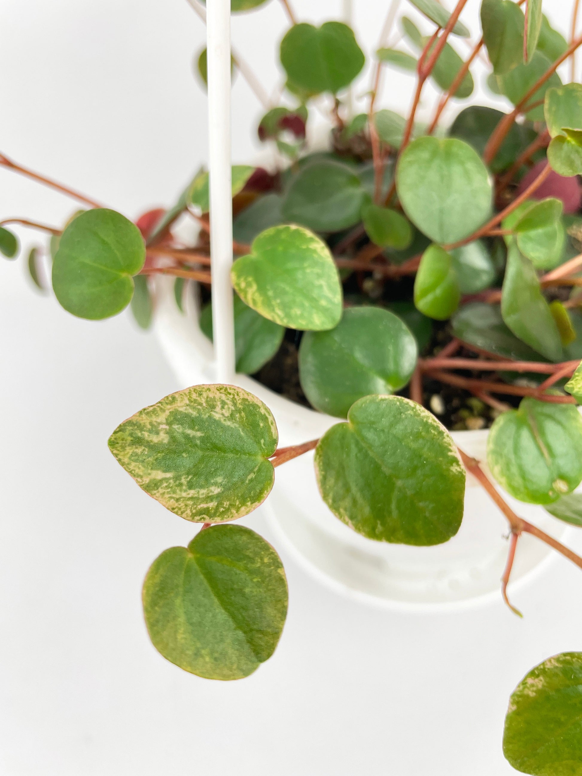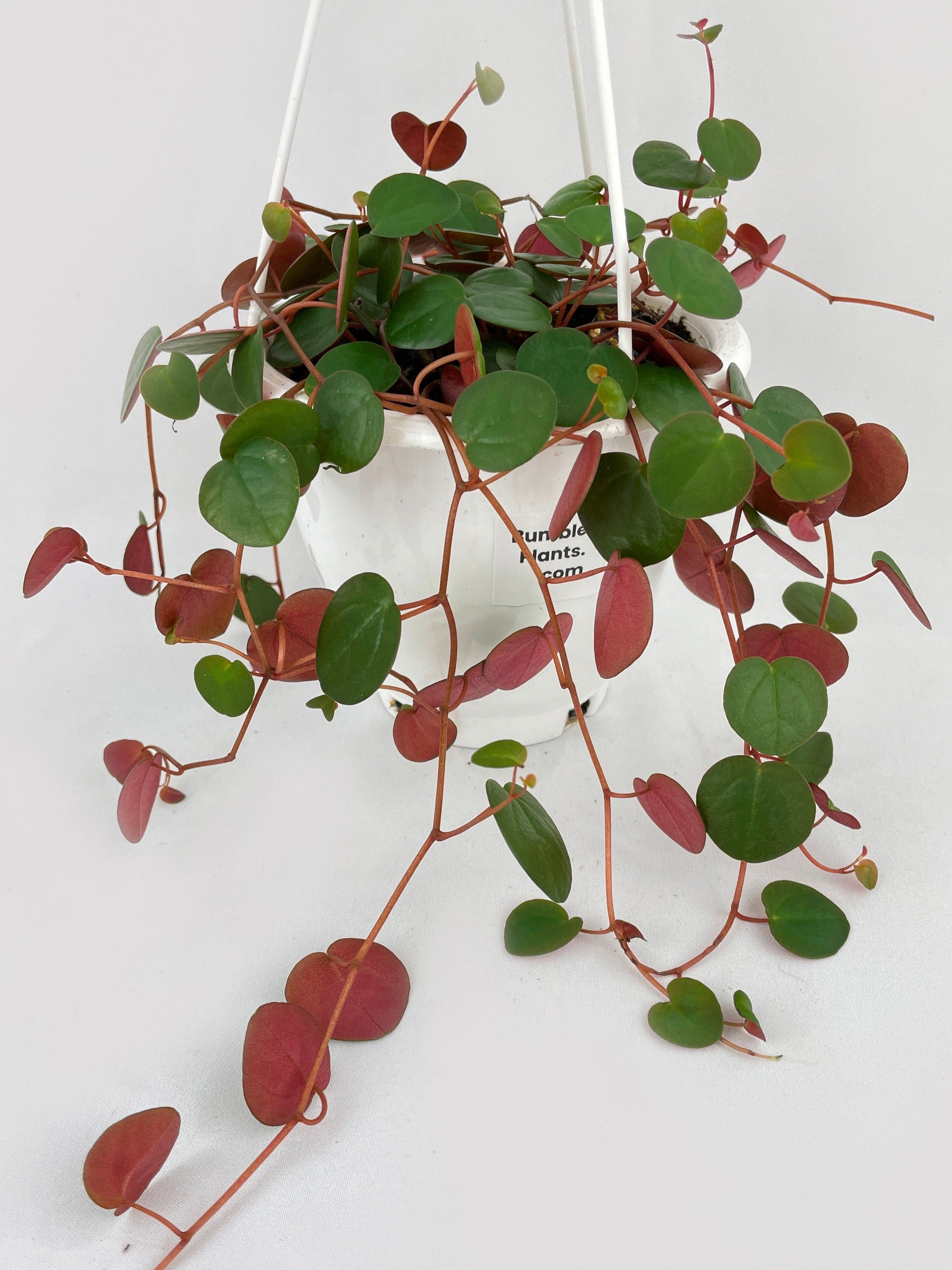 Peperomia Ruby Cascade is a dark leaf trailing plant. The small peperomia ruby cascade produces reddish vine-like stems with rounded succulent leaves. Ruby Cascade needs bright, indirect sunlight, no matter if it’s grown indoors or outdoors. It needs very little water but loves humidity to thrive.