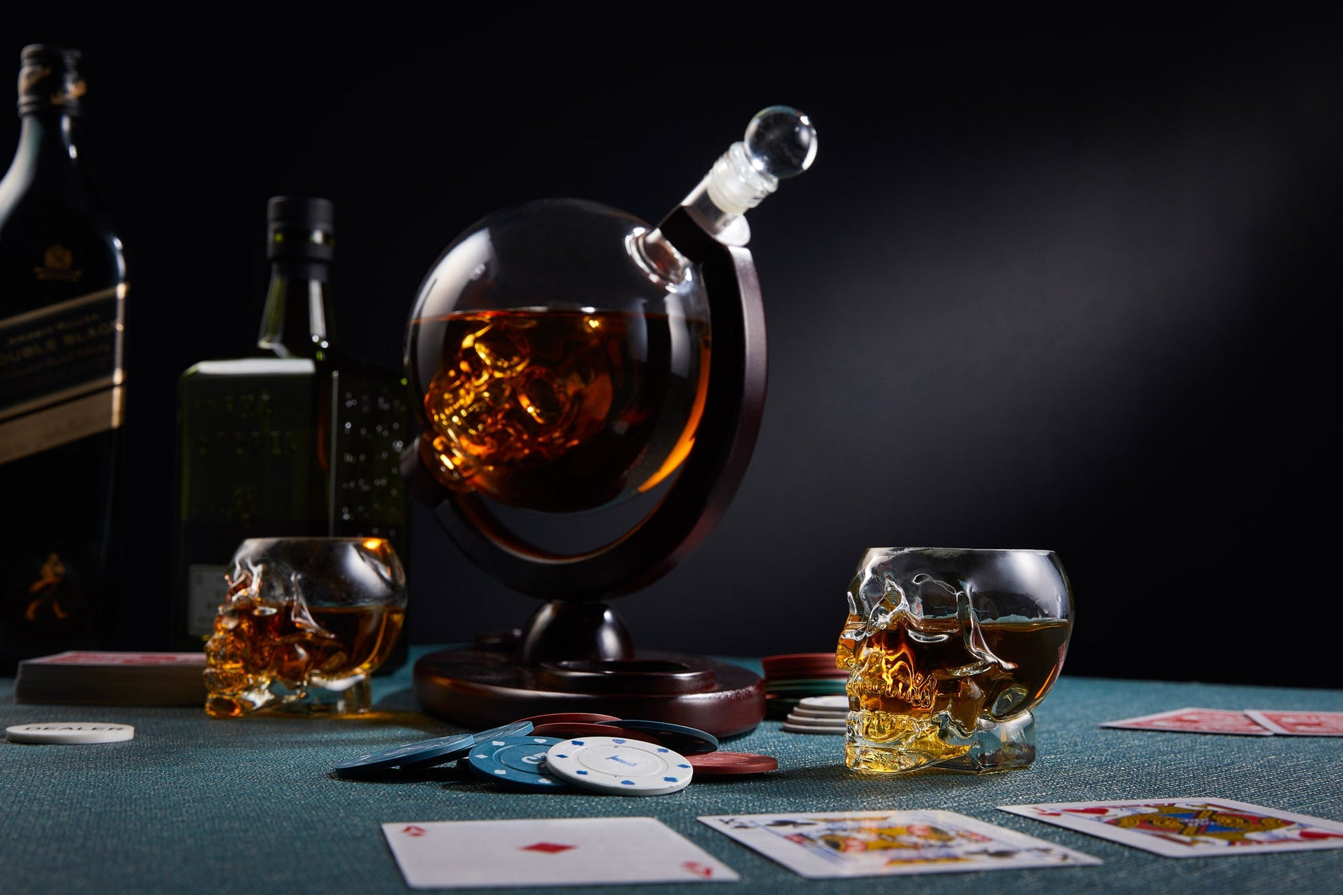 - An excellent addition for parties and social gatherings or for putting a finishing touch to your home bar or mancave. The skull inside really looks amazing when filled with the golden brown elixir of Whiskey!