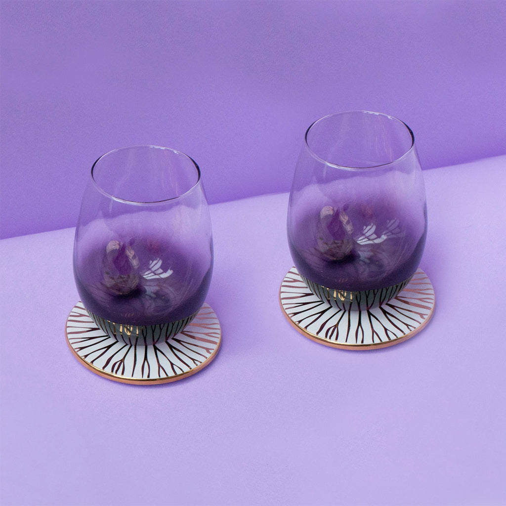 Our Ombre stemless wine glasses were inspired by the dreamy gradations of light at dusk, our founders Anna and Talia's favorite time of day. Designed for fun and frolic, they hold rosé, whiskey on the rocks, and a pomegranate spritzer with equal ease. Made of ombre glass and created to be flexible, they elevate indoor and outdoor dinner parties alike, and help your table to feel just like you.- Set of 2
